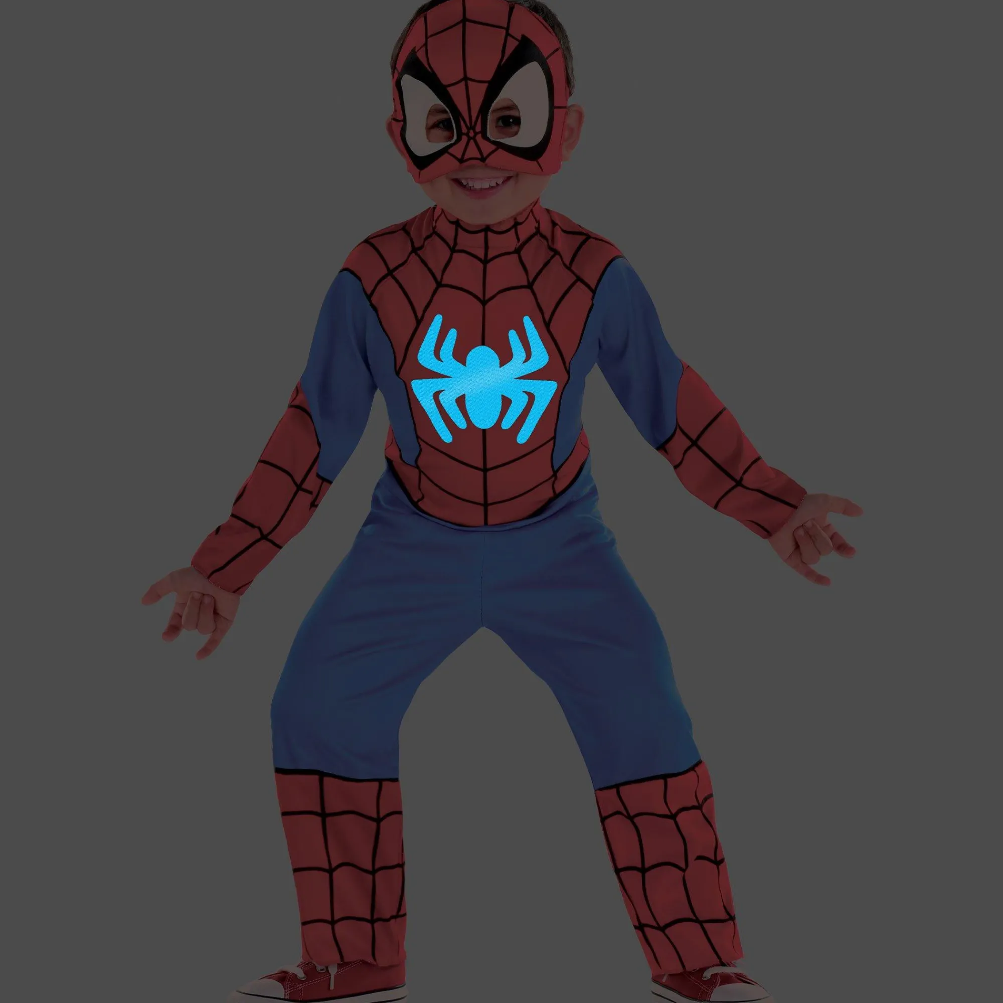 Help Them Transform Into A Web-Slinging Superhero In An Instant With This Peter Parker Spider-Man Costume Set. It Includes A Red And Blue Jumpsuit With A Glow-In-The-Dark Chest Logo And A Half Mask To Conceal Their Identity. The Hook-And-Loop Closures On The Back Of The Suit Make It Easy To Get In Or Out In A Flash So They Can Get Straight To Saving The Day With Their Other Spidey Friends.