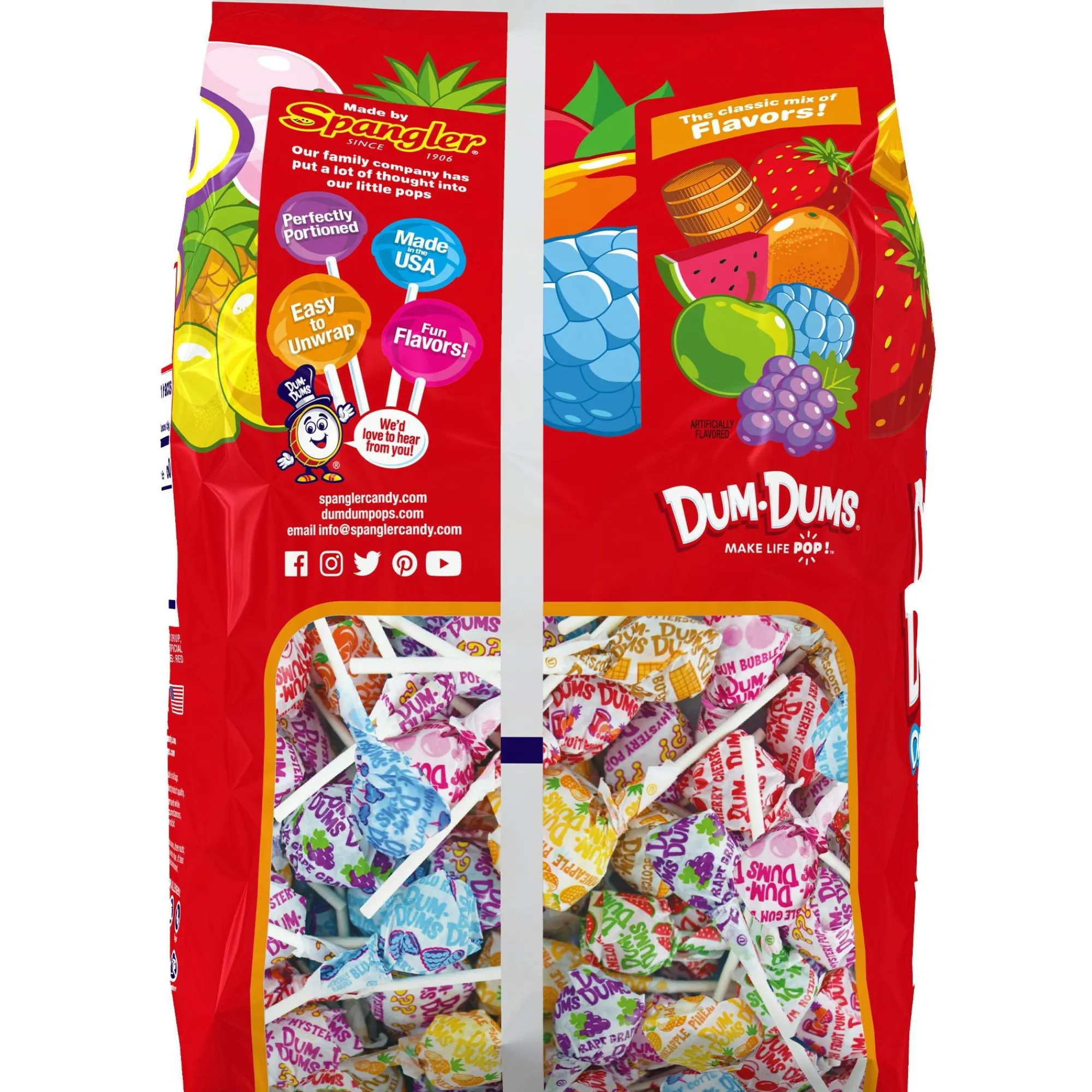Add Dum-Dums To Your Shopping List! Up To Sixteen Fruity Flavors Are Included In Each Pack. Dum-Dums Have A Way Of Brightening Life’s Everyday Moments At Home, On The Go, Or Even At Work. Share Dum-Dums With Your Family, Friends, Students, Or Customers. They Can Also Add A Pop Of Color And Flavor To Your Next Party. These Famous Pops Have A Long History Of Helping Us Find The Fun And Playful Side Of Daily Life. Find An Old Favorite Or Discover A New One In The Seemingly Endless Variety Of Tasty Flavors. Dum-Dums, Make Life Pop!