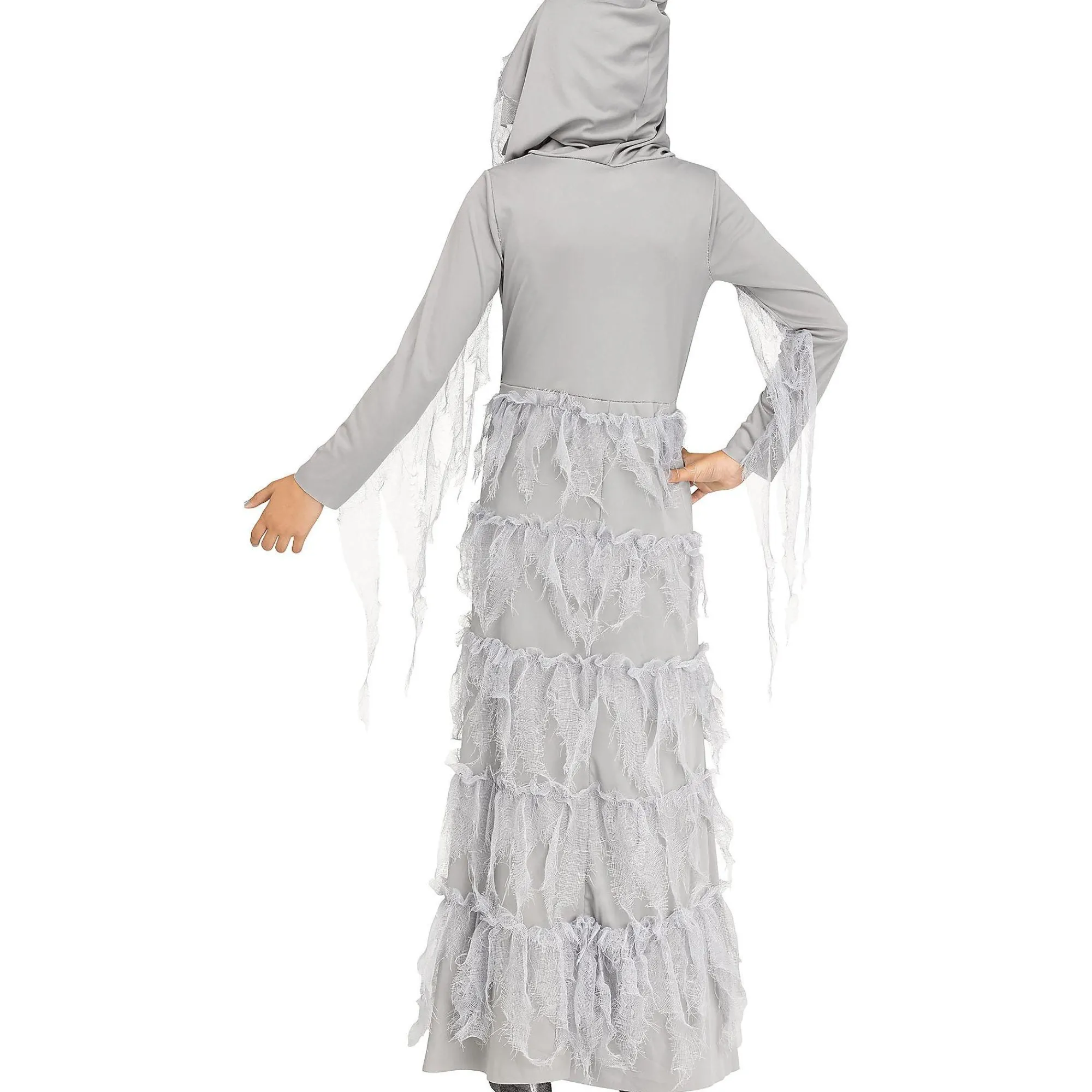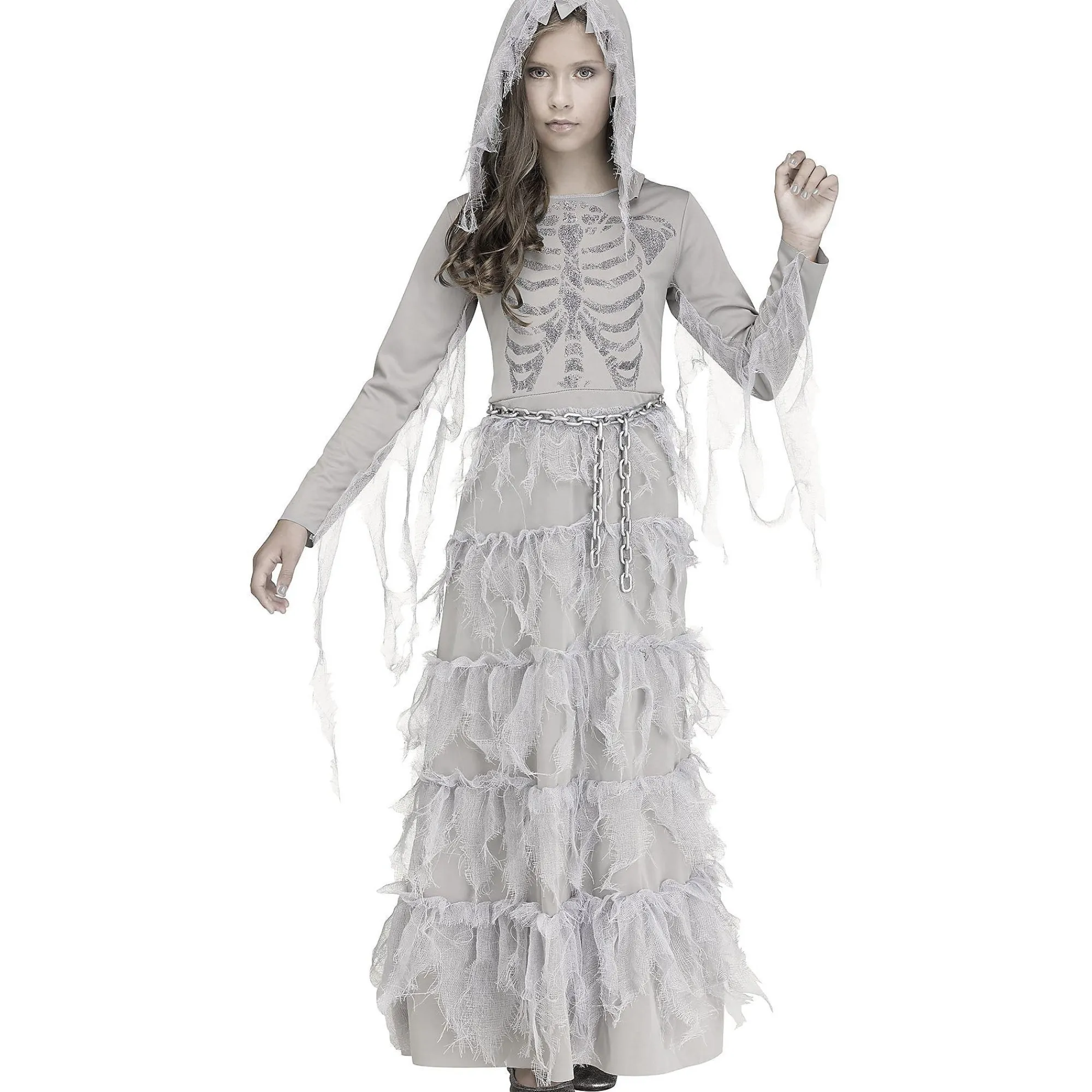 They’Ll Look A Lot Lovely And A Little Creepy In This Ghost Costume For Kids! The Long-Sleeve Dress Is Floor Length With A Prismatic Skeleton Print On The Bodice And Tattered Gauze On The Sleeves, Hood, And Skirt. For The Final From-The-Crypt Touch, Add The Plastic Chain Belt.