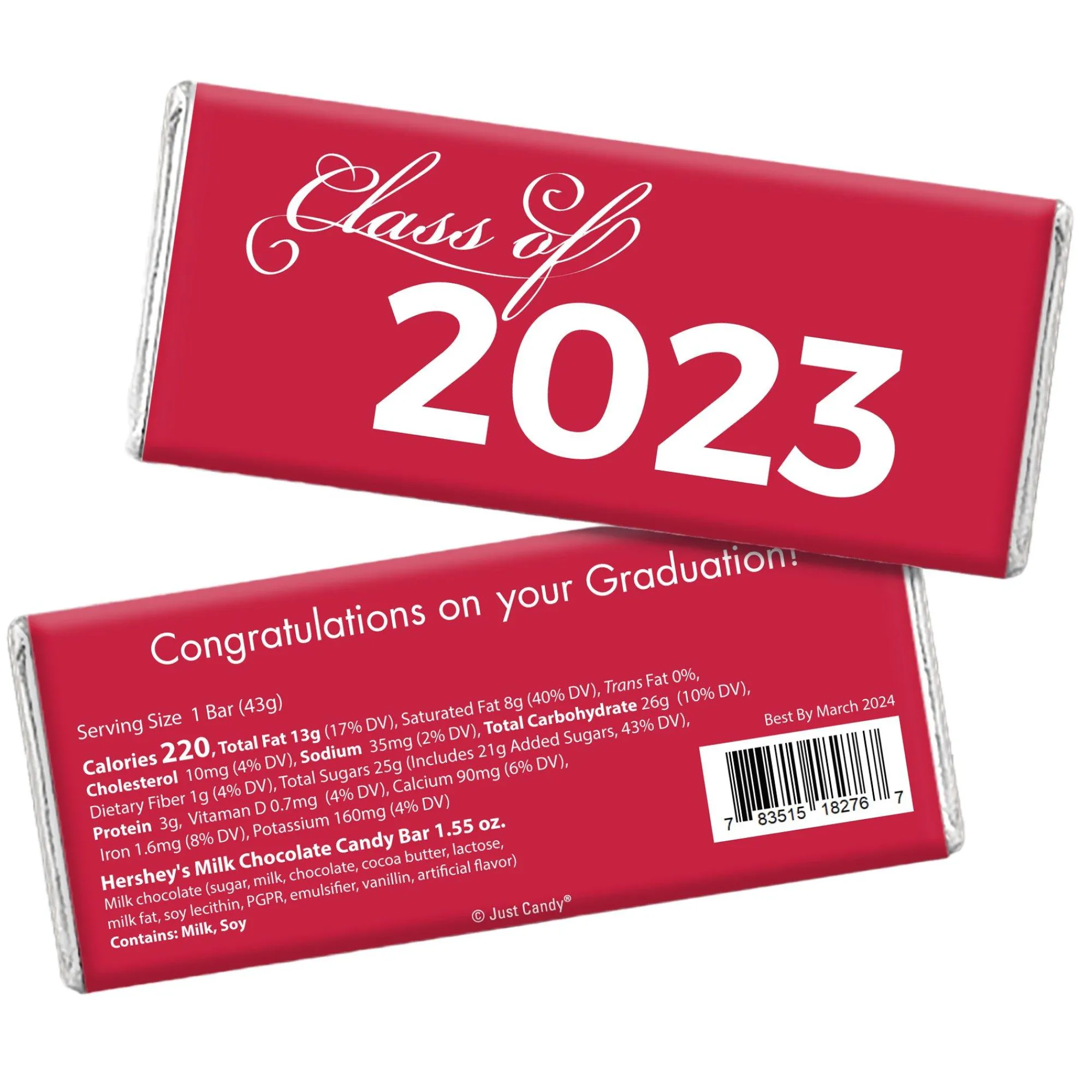 Make Their Grad Party All The More Sweeter With A Class Of 2023 Hershey’s Milk Chocolate Candy Bar. It Features A Red, Grad-Themed Wrapper With A Class Of 2023 Headline On The Front And Congratulations On Your Graduation! On The Back. Gift It To The Grad, Display It In A Treat Table Spread, Or Even Add It To Favor Bags For Guests To Bring Home And Enjoy.