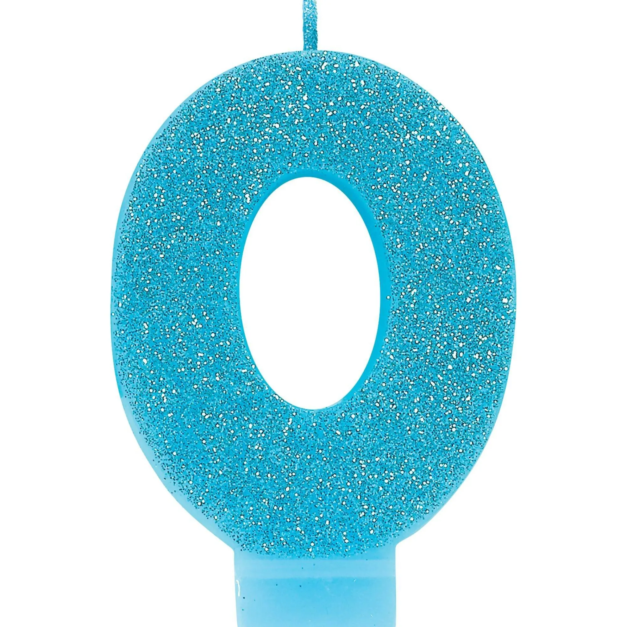 Party City Baking Supplies-Glitter Caribbean Blue Number 0 Birthday Candle