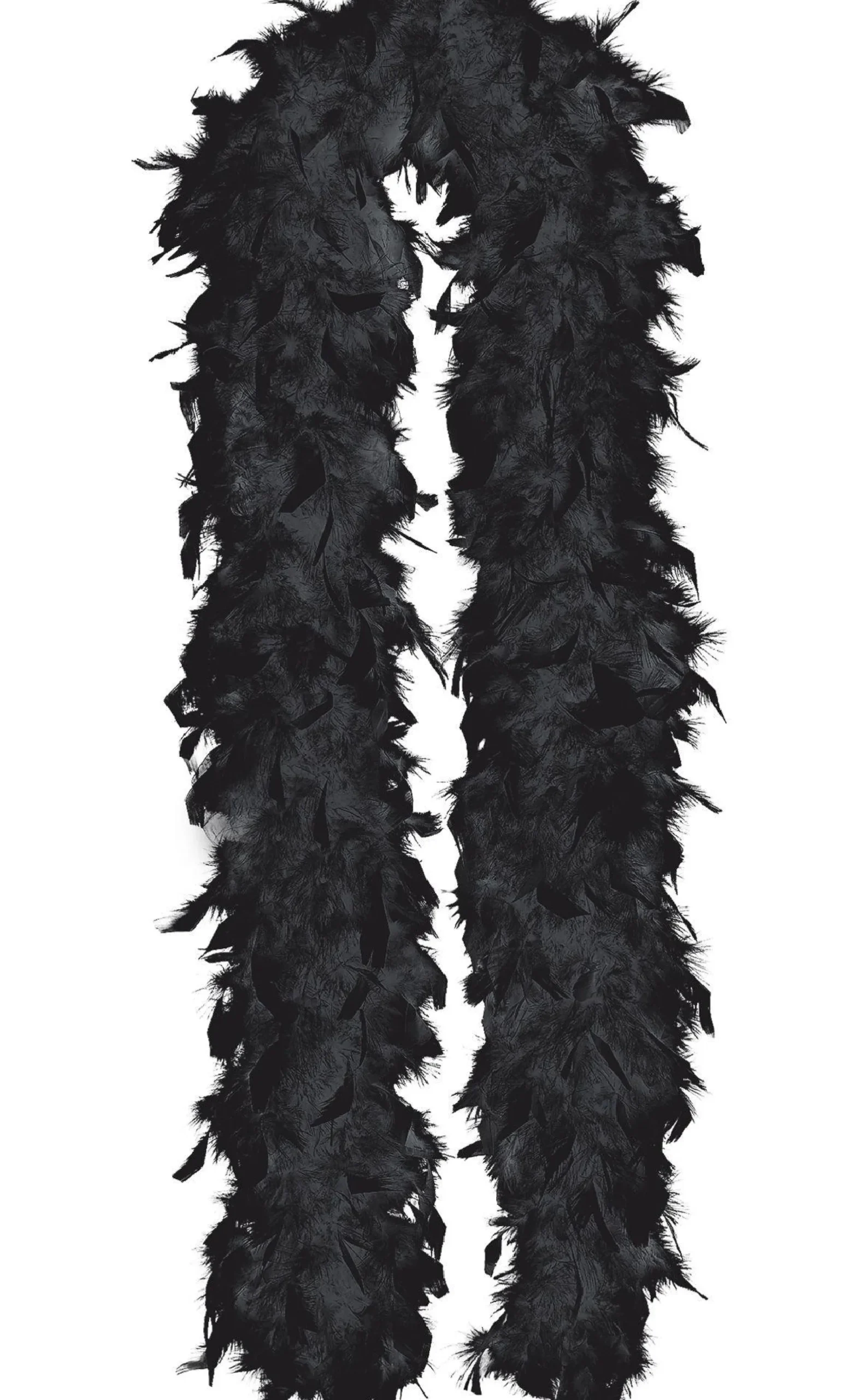 Let’s Get Fancy! This Black Feather Boa Features Long Black Feathers Sure To Tickle Every One Of Your Fancies. Wrap This Black Boa Around Your Neck Or Drape It Around Your Shoulders To Spice Up A Costume Or To Match Your Spirited Team Gear. The Black Boa Is Made With Real Feathers.