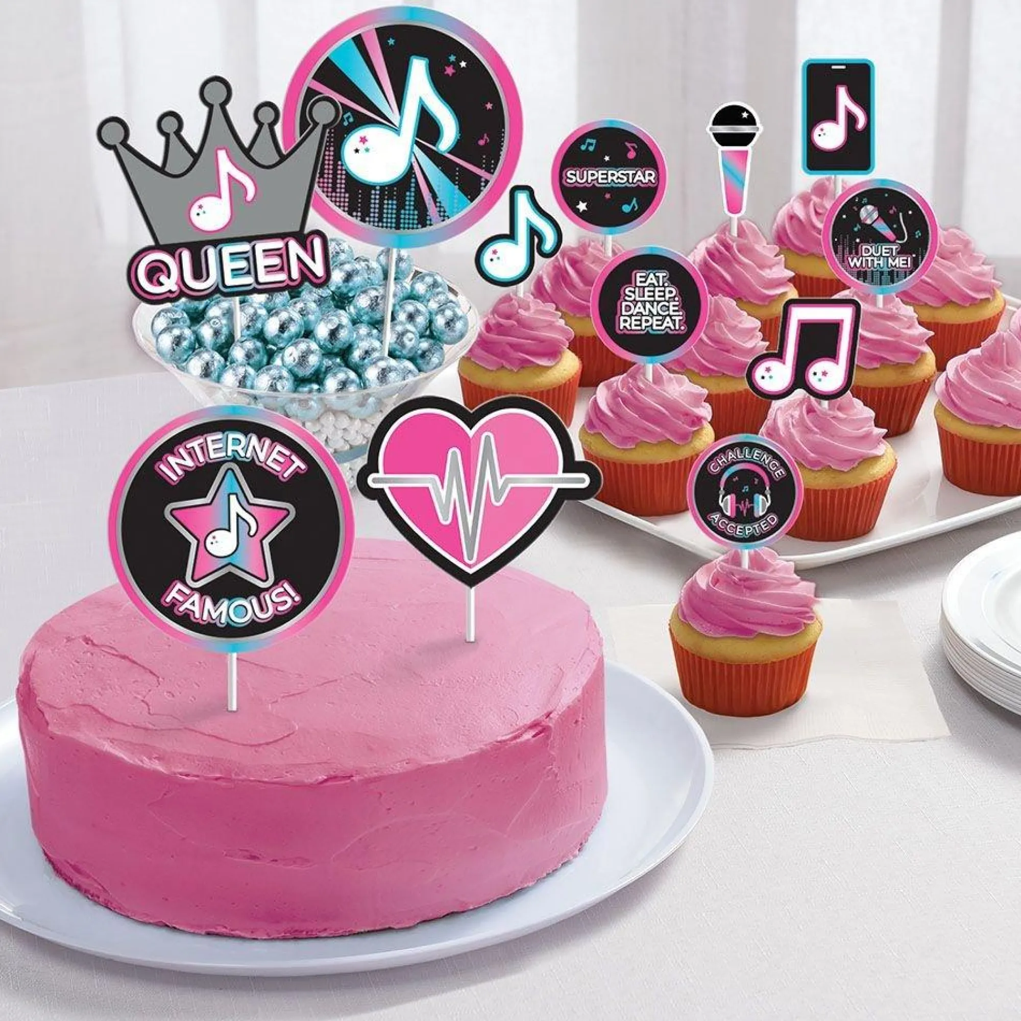 Add A Super-Fun Touch To Your Little Star’s Birthday Treats With A Dessert Decorating Kit! The Kit Includes Four Large Picks: A Silver Crown, A Heart, A Musical Note, And An Internet Famous Headline. Eight Small Picks Have Music-Inspired Messages Like Superstar. Top Cakes, Candy Displays, Cupcakes, And Other Tasty Treats With These Colorful Decorations.