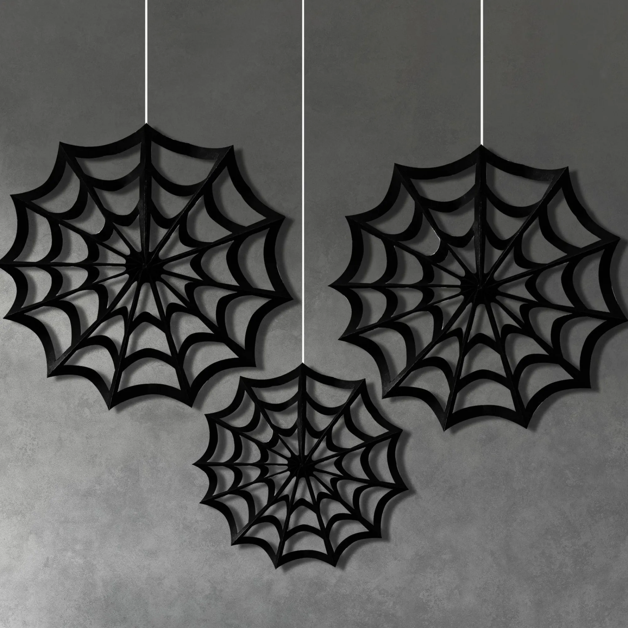 Party City Decorations|Classic Black & White Spiderweb Die-Cut Paper Fan Decorations, 3Ct