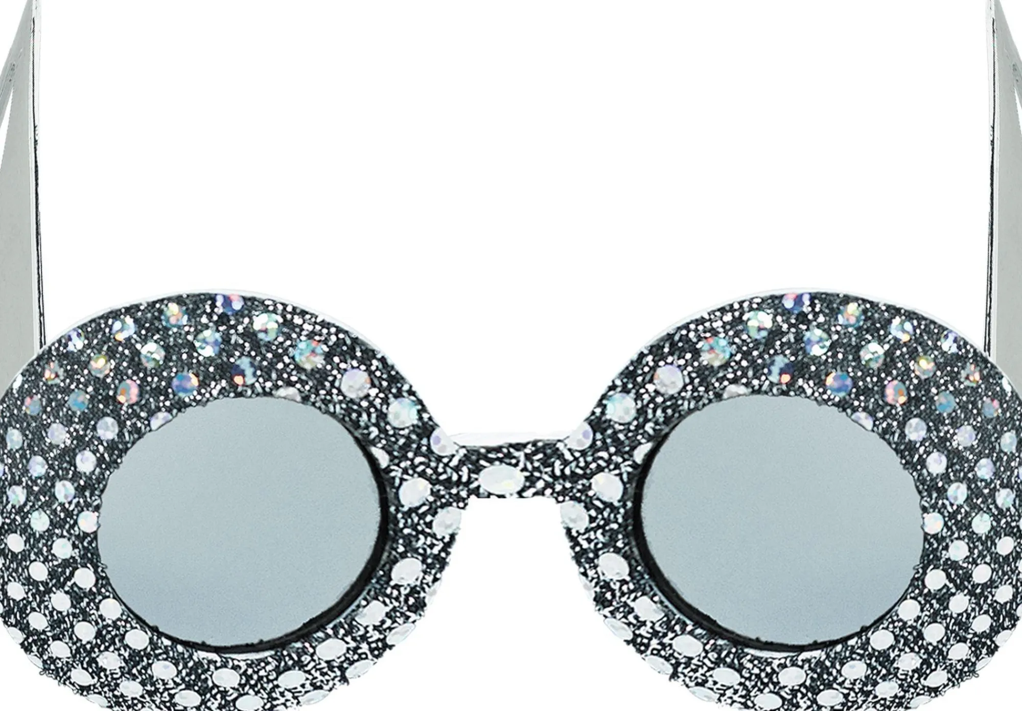 Channel Your Inner Diva. Our High Maintenance Sunglasses Are Oversized Round Glasses Covered In Silver Sequins. The Blue Lenses Complete This Over-The-Top Fashion Accessory. Glasses Provide Uv400 Protection. Great As Part Of A Starlet Costume, One Size High Maintenance Sunglasses Fit Most Teens And Adults.