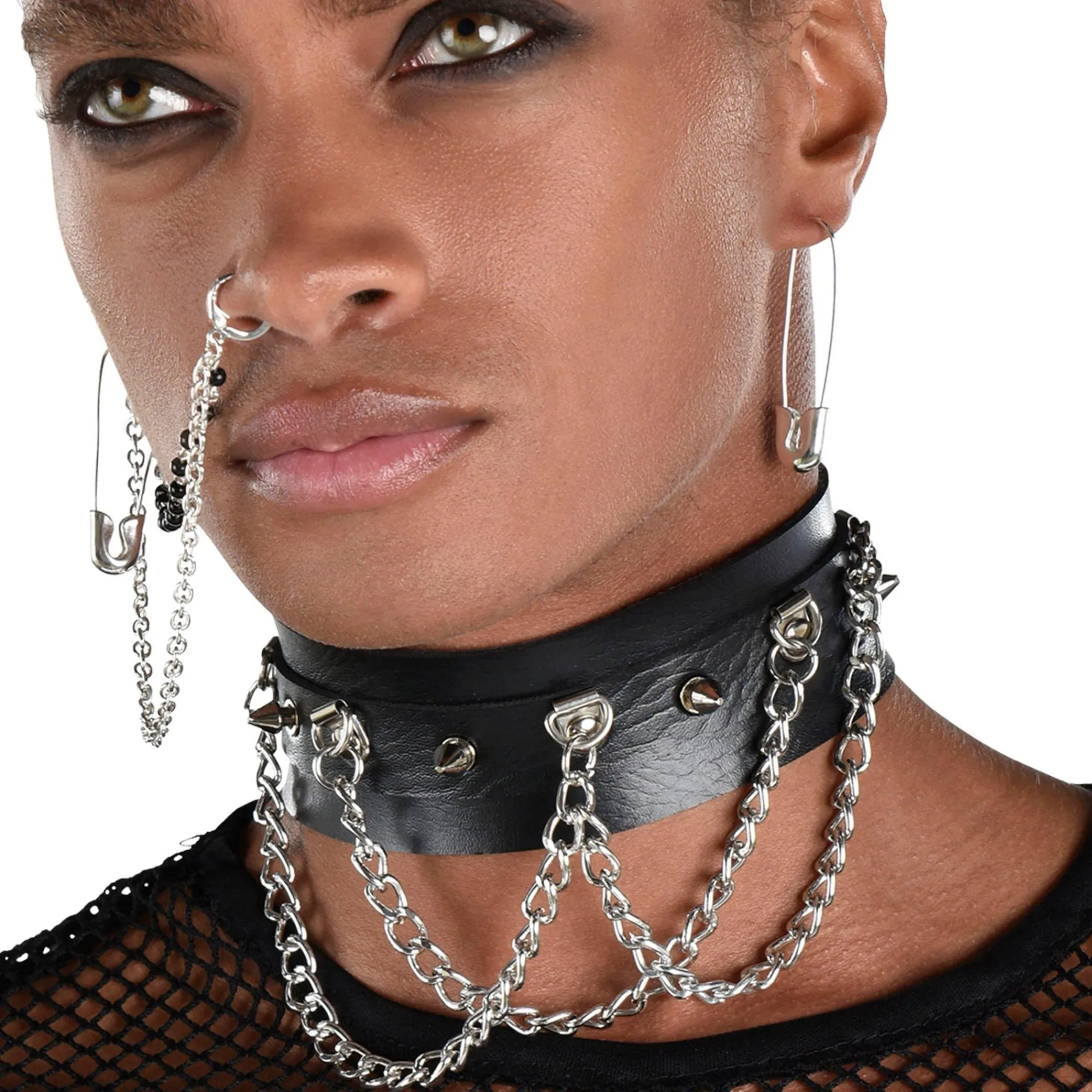 Party City Jewelry-Adult Spiked Dog Collar Choker With Chains – Punk