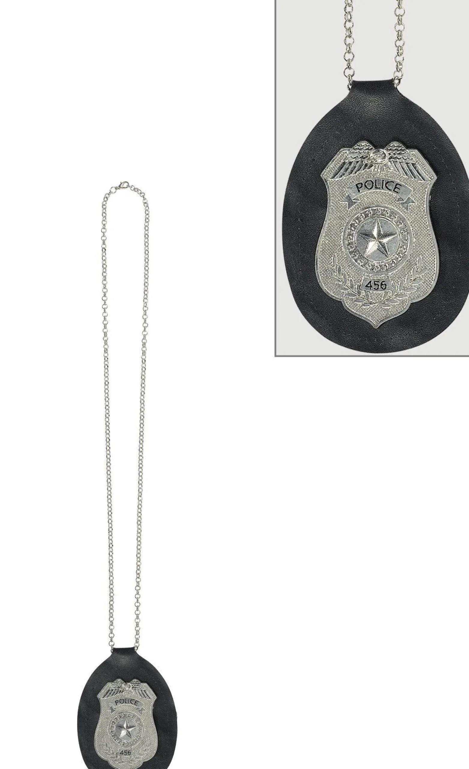 Party Fun Will Be Enforced When You Walk In Wearing This Police Badge Necklace! This Silver Plastic Police Badge Is Attached To Faux Leather Backing And Includes A Long Metal Chain With Lobster Claw Clasp. The Badge Reads Police And Precinct Number 456 And Includes An Inscribed Eagle. Use This Police Badge As Part Of Your Police Detective Halloween Costume, Or Use It To Fool Your Friends!