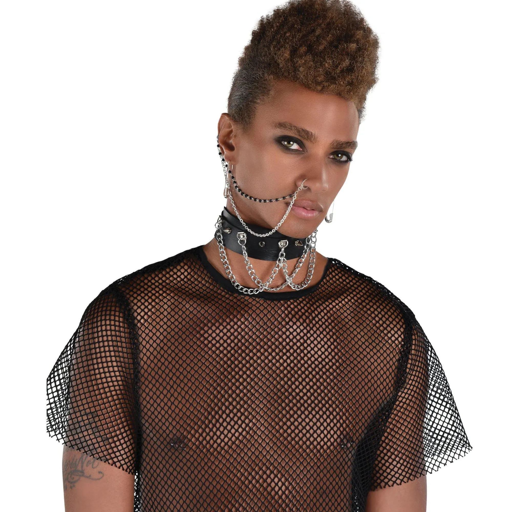 This Punk Jewelry Set Has All The Accessories You Need To Nail The Look. It Includes A Pair Of Large Safety Pin Earrings And A Double-Layered Ear To Nose Chain With A Cuff At Either End.