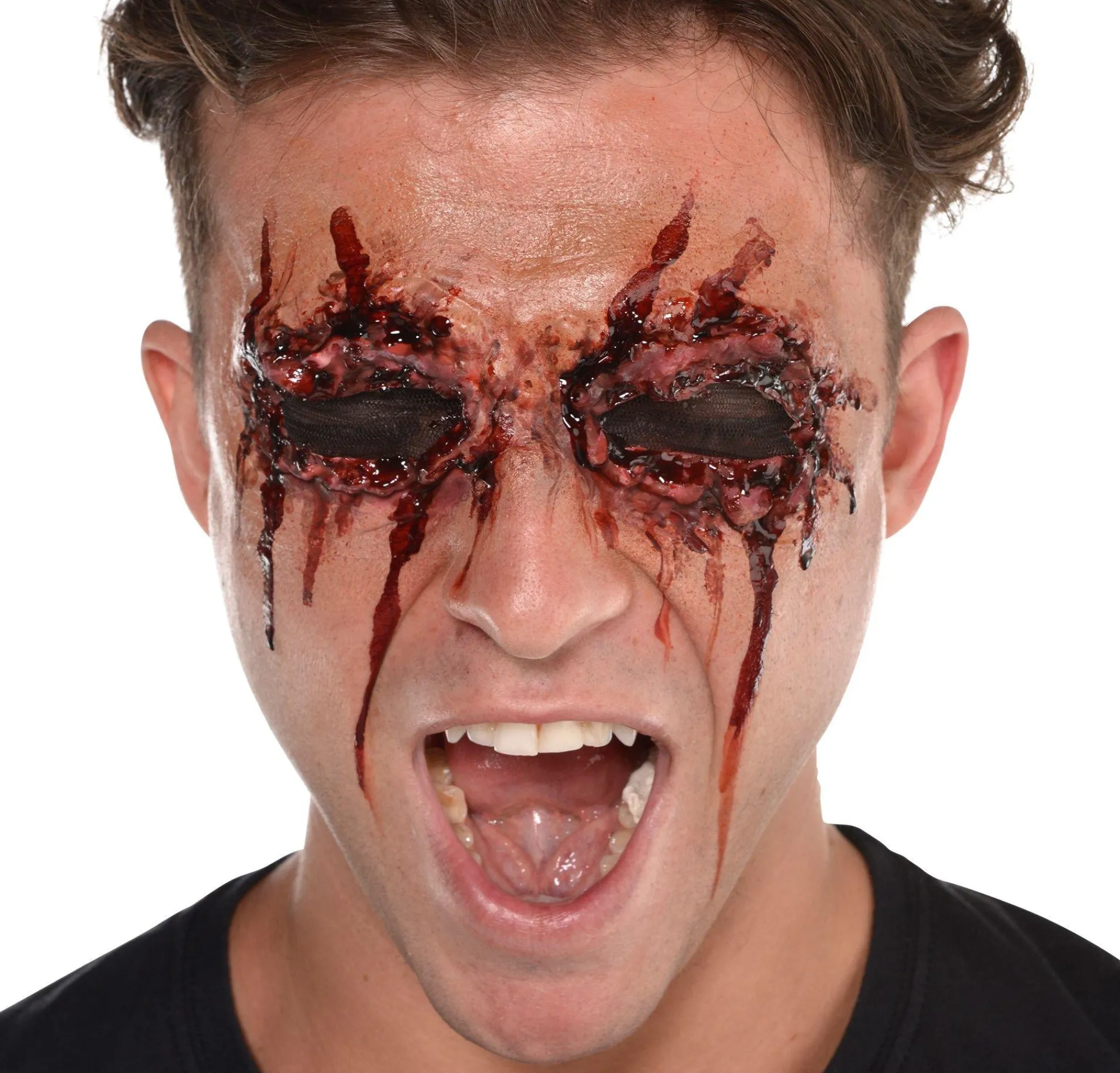 All Eyes Are On You With Our See No Evil Prosthetic! Featuring Faux Flesh Latex With Mesh-Covered Cutouts For Your Eyes, This Prosthetic Gives You The Eye-Catching Illusion Of A Bloodied Blinded Face. For Realness And Easy Application, Use Spirit Gum (Sold Separately) And Touch It Up With Make-Up. Simple To Follow Step-By-Step Instructions Are Included To Help You Get The Results You Desire. See No Evil Prosthetic Does Not Include Blood Gel Or Remover.
