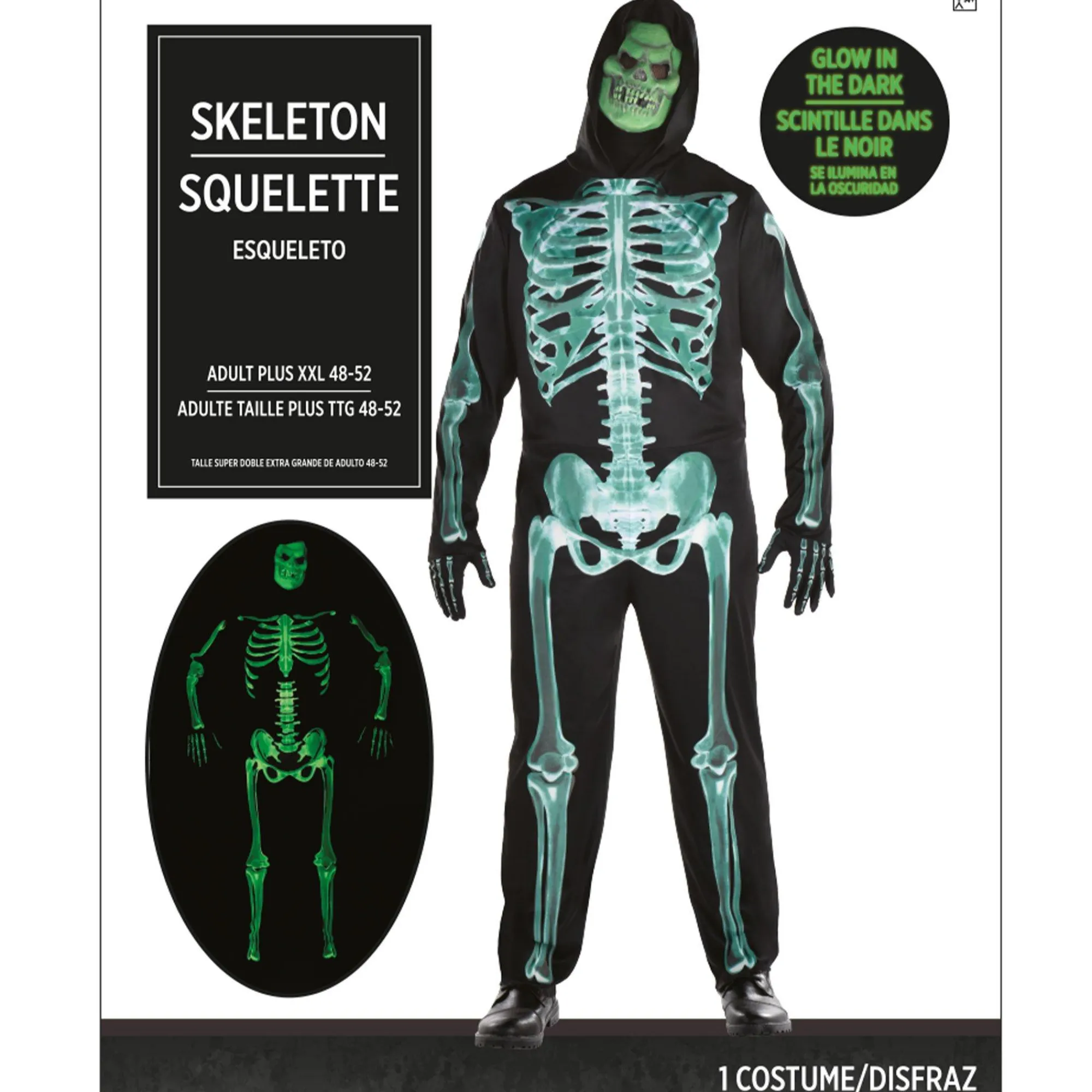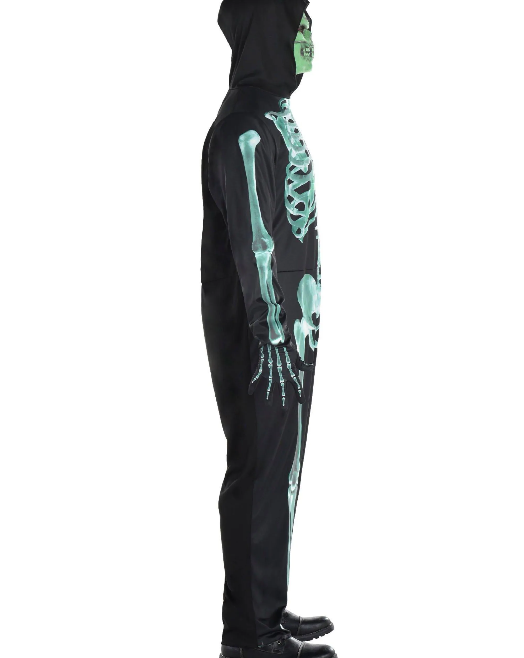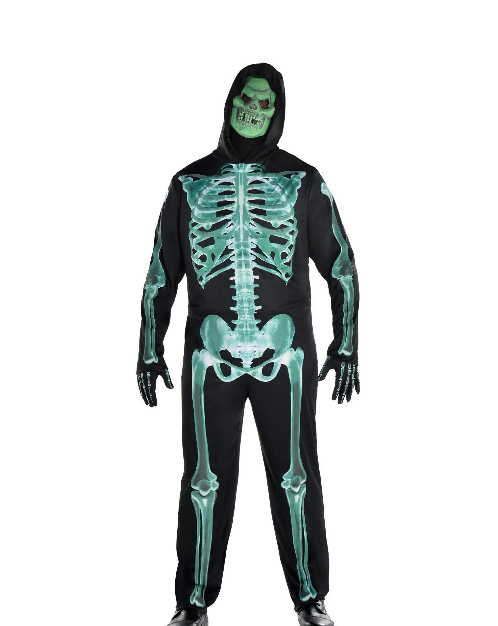 What’s That Spooky Glow In The Halloween Night? It’s A Glow-In-The-Dark Skeleton! This Costume Includes A Black Hooded Jumpsuit With A Glow-In-The-Dark Skeleton Print, Matching Black Gloves, And A Glow-In-The-Dark Mask.