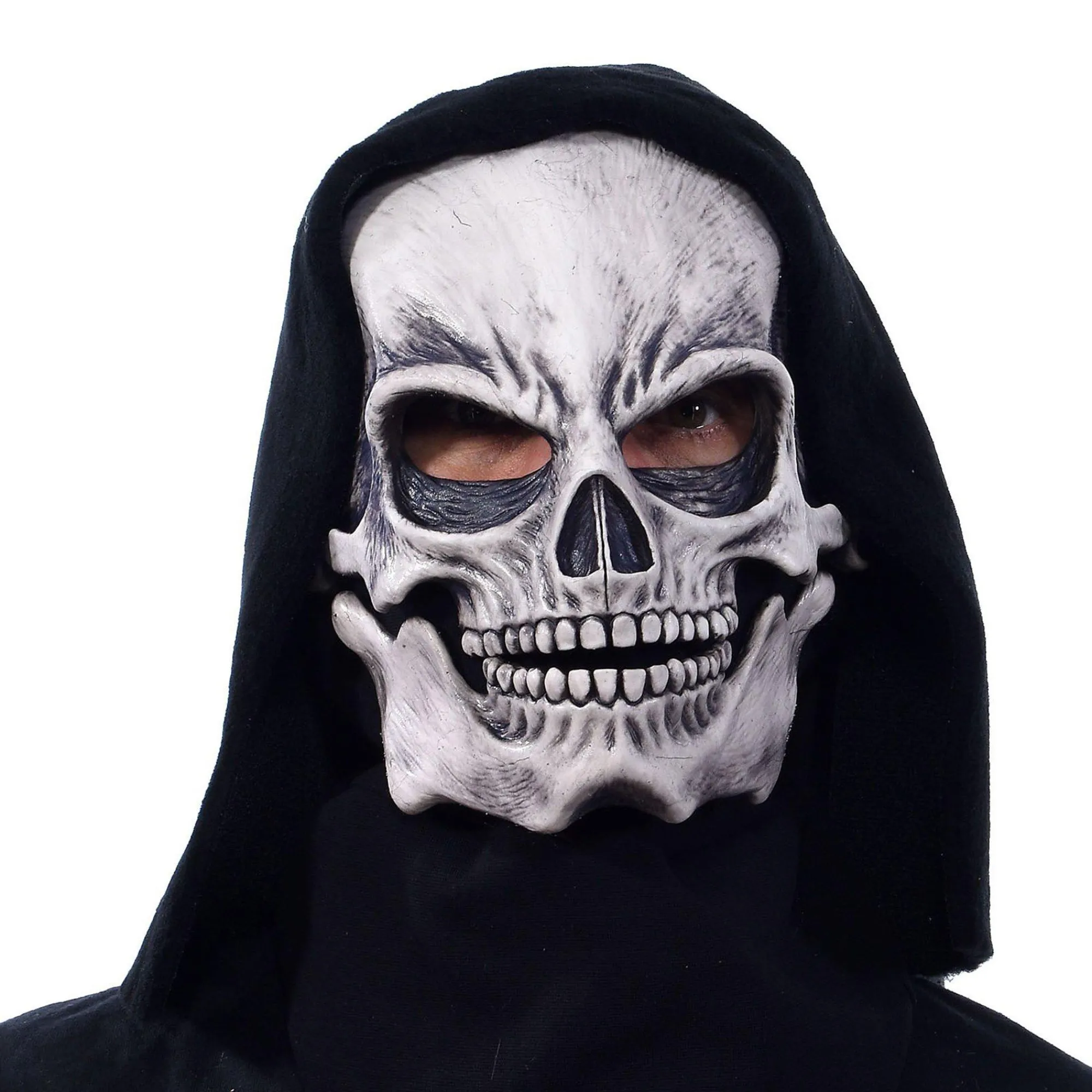 Embrace Your Fate In The Damned Soul Mask. Made Of Natural Latex, This Mask Features A Fearsome Skeleton Face. It Comes Attached To A Fabric Hood, So The Mask Stays Secure And Comfortable All Day Long.
