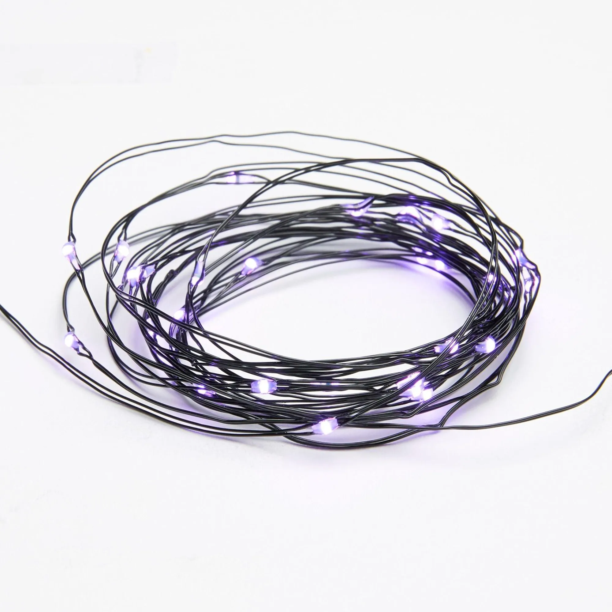 Illuminate The Party In An Elegant Way By Decorating With Small Purple String Lights! These Small Purple Lights Are Strung Together With Copper Wire. You Can Use These Lights To Decorate Your Front Porch, Stair Railings, Or The Wall For Halloween Parties Or Any Other Special Event. Brighten Up The Party With Color By Hanging Up These Purple String Lights!