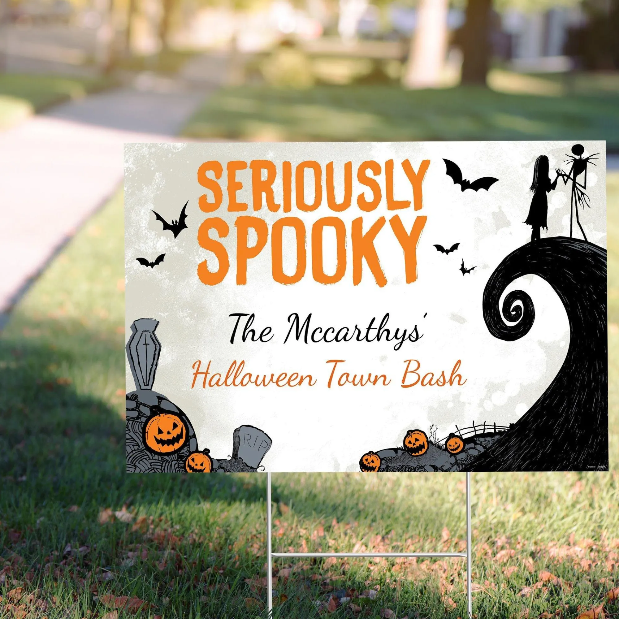Decorate Your Lawn To Direct Guests To The Halloween Party With A Custom Nightmare Before Christmas Yard Sign! The Outdoor Decoration Features A Seriously Spooky Headline, An Image Of Jack And Sally On Spiral Hill, And Space To Add A Personalized Message. It’S Easy To Customize Your Text With Our Selection Of Font Styles And Colors. The Durable Yard Sign Is Made Of Sturdy Corrugated Plastic And Can Be Placed In Your Lawn Using The Included Metal Stake.