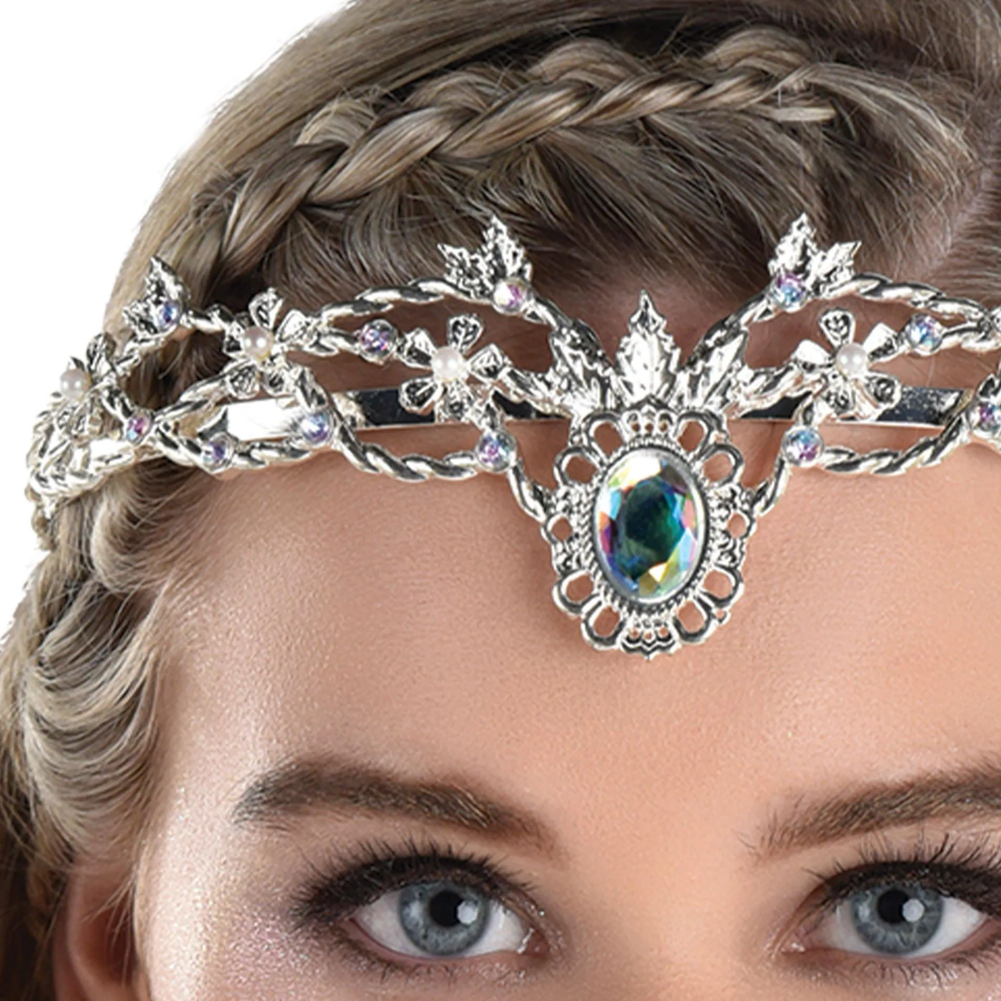 Top Your Fairy Costume With This Metal Tiara. It Features Flowers, Pearls, Rhinestones, Braided Vines, And A Large Iridescent Gem In The Center.