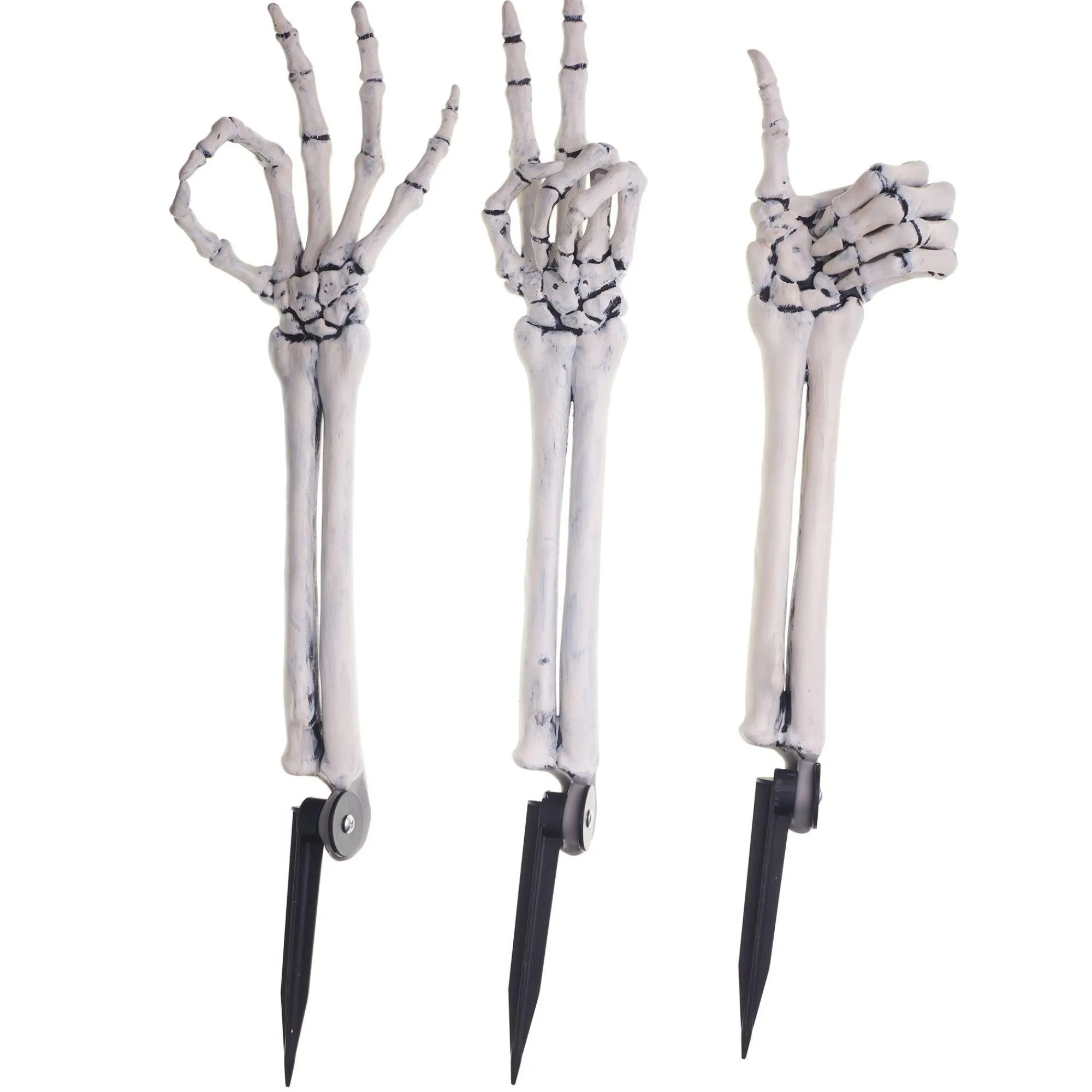 This Outdoor Skeleton Hand Display Features Plastic Human Remains That Are Planted In The Ground To Create The Illusion Of Skeletons Rising From The Grave. Each Hand Is Posed In A Different Shape: Ok, Peace, And Thumbs Up. The Creepily Amusing Halloween Props Are Durable, Reusable, And Easy To Assemble.