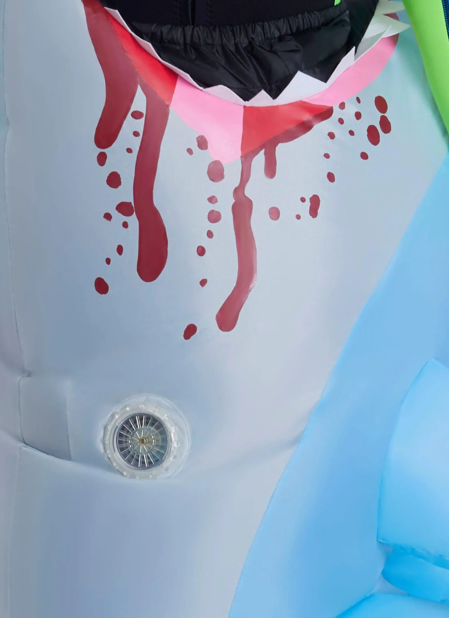 Yikes! This Shark Is Hungry For Human Flesh! This Man-Eating Shark Costume Self-Inflates With An Attached Fan, And It Includes A Battery Pack.